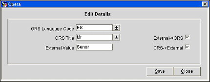 Once you have activated your conversion codes you will start entering new conversion details, or update existing ones. Click on Edit on any of your conversion details and you will see a screen as below. The ORS value can be selected from a list of values. The external system value has to be entered in free format in the proper case and spelling required.