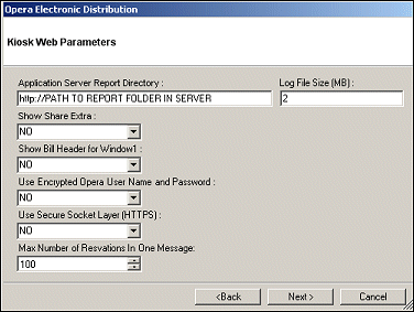 Refer to the following image and the table below for information on entering Kiosk Web Parameters:
