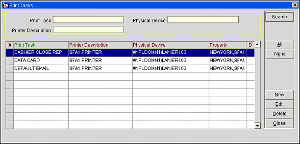 Note: The Print Tasks screen only displays global print tasks and print tasks for the property that the user is logged into.